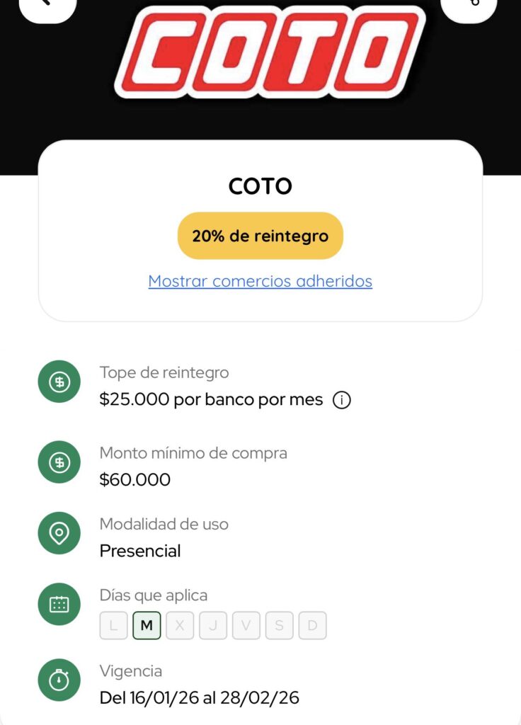 Para activar el Modo descuento en Coto, es imperativo cumplir con una arquitectura de compra específica. El sistema requiere un mínimo de compra de $60.000 en una única transacción. Al alcanzar este monto, el reintegro del 20% comienza a operar hasta llegar a un tope de $25.000 por banco por mes. Esto significa que un usuario que distribuya sus compras estratégicamente todos los martes puede recuperar una porción significativa de su presupuesto mensual, acreditada directamente en su cuenta bancaria vinculada.