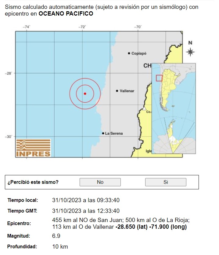 De acuerdo con el Instituto Nacional de Prevención Sísmica (INPRES), el temblor tuvo una magnitud de 6.9 grados y se originó a una profundidad de 10 kilómetros.