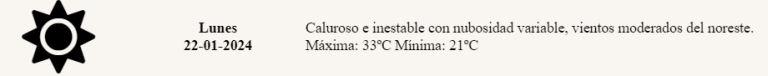 - Tormentas Aisladas: Las autoridades meteorológicas advierten sobre la posibilidad de tormentas aisladas en la región. Se recomienda a la población mantenerse informada mediante fuentes confiables y tomar las precauciones necesarias para afrontar condiciones climáticas adversas.
