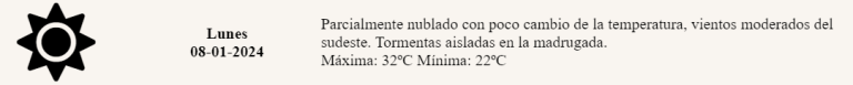 De acuerdo con el informe meteorológico, se espera que las condiciones atmosféricas prevalezcan con cielos parcialmente nublados durante el transcurso del día. Los vientos, provenientes del sudeste, soplarán de manera moderada, brindando un suave alivio a la sensación térmica.