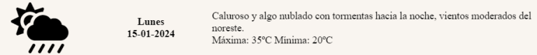 Además del intenso calor, se prevé que hacia la noche la región experimente tormentas eléctricas, acompañadas de vientos moderados del noreste. Esta combinación de factores meteorológicos podría generar condiciones adversas, como lluvias intensas y posibles ráfagas de viento.
