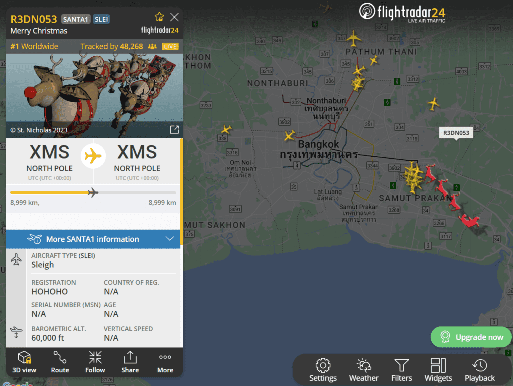 Para seguir su viaje, solo necesitas acceder a Flightradar24 el 24 de diciembre. Una vez allí, busca la aeronave especial identificada como «SANTA» o «Sleigh1». Esta representación virtual del trineo de Papá Noel te mostrará en qué parte del mundo se encuentra y su progreso durante la noche.
