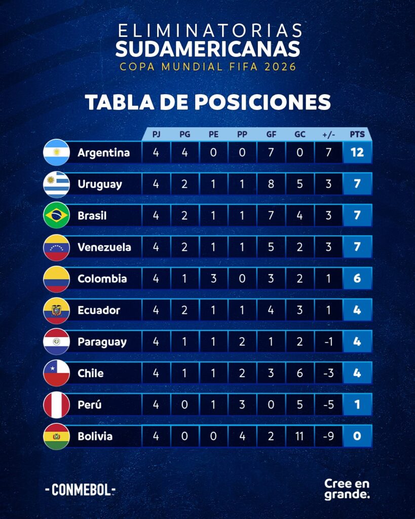 Asi estará La tabla de posiciones de las Eliminatorias para el partido Argentina vs Uruguay