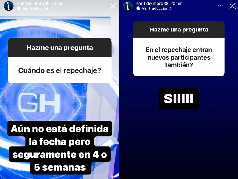 A través de sus historias de Instagram, Santiago del Moro se encargó de contar diferentes noticias sobre Gran Hermano 2023 y generó mucha sorpresa entre sus seguidores. En primer lugar, confirmó el repechaje, que en algún momento de la siguiente semana ingresará a la casa para entregar los mensajes de una palabra de los familiares a los participantes.