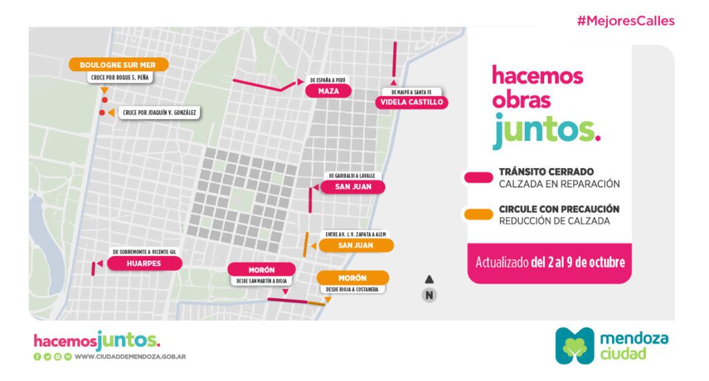 La Ciudad de Mendoza, en el marco de su Plan de Obras 2023, informa las novedades en relación a los cortes de tránsito por trabajos en calzada que se llevarán a cabo durante la próxima semana y también las habilitaciones de calles, luego de ser renovadas con labores viales.