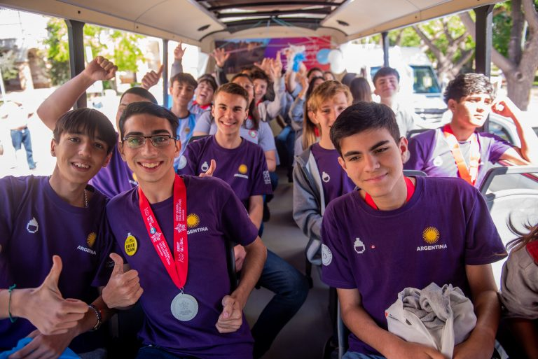 El Gobernador y funcionarios provinciales recibieron en la explanada de Casa de Gobierno a los alumnos subcampeones en el Mundial de Robótica en Singapur.