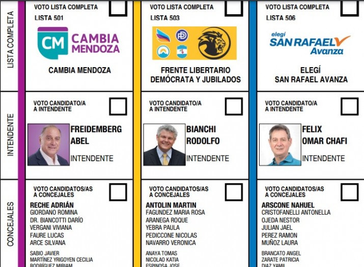 En cada uno de estos lugares, donde ya tuvieron elecciones primarias el 30 de abril, se elegirá al intendente y la mitad de los concejales. En dos de ellos, San Rafael y Maipú, se disputarán 6 de los 12 puestos para concejales.