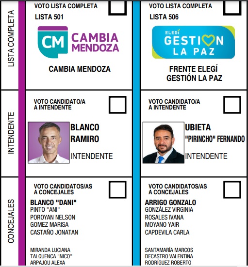 - En La Paz, además de la posible reelección de Fernando Ubieta, Ana Sol Pinto, sobrina de los hermanos Gustavo y Sergio Pinto, aparece como la segunda en la lista de concejales de Cambia Mendoza.
