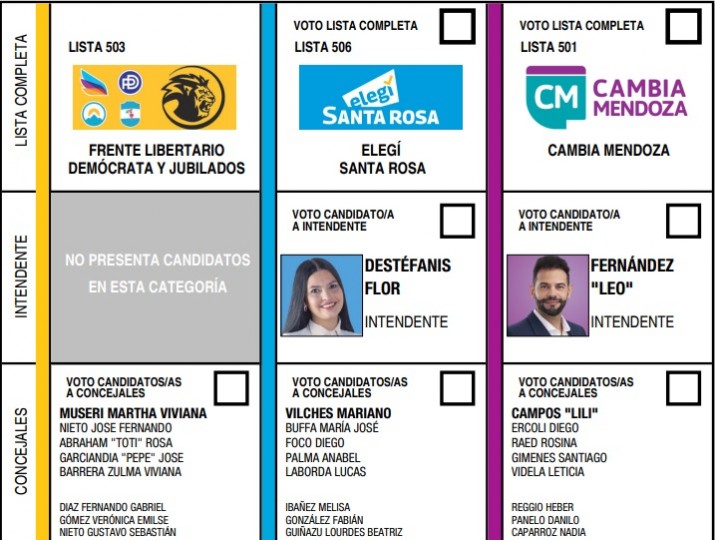 - Tres intendentes actuales buscan la reelección: Flor Destéfanis en Santa Rosa, Matías Stevanato en Maipú y Fernando Ubieta en La Paz.
