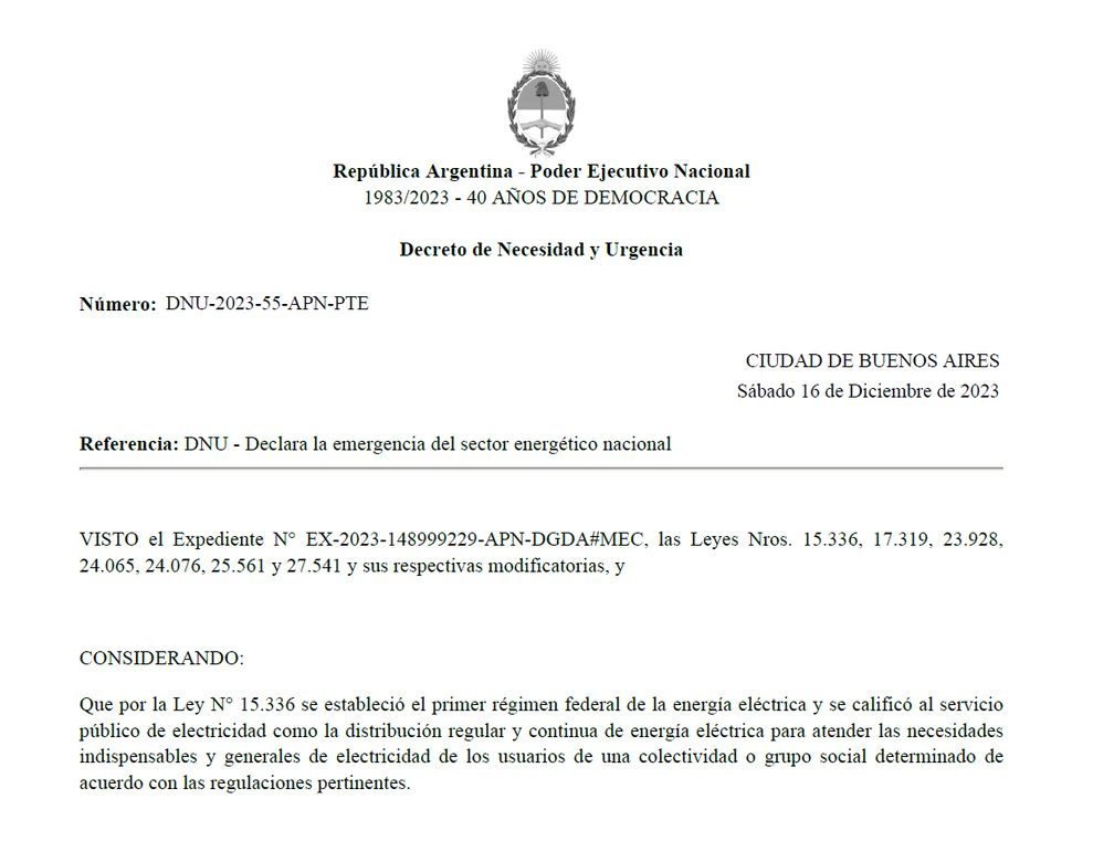 El Gobierno nacional ultima detalles para declarar la emergencia en el sector energético y dispondrá la intervención de los entes reguladores de electricidad y gas, trascendió este domingo. Será a través de un decreto de necesidad y urgencia que se publicaría este lunes en el Boletín Oficial.