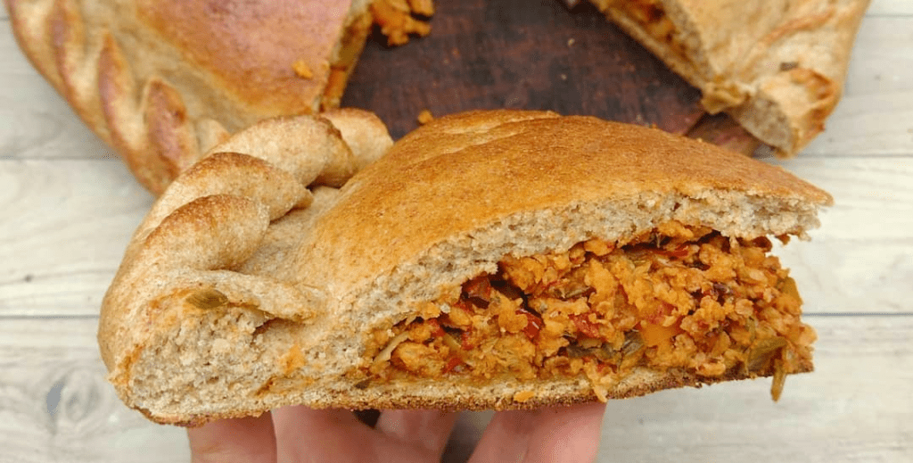 - Precalienta el horno a 180 ºC y hornea la empanada durante aproximadamente 40-45 minutos o hasta que esté dorada.