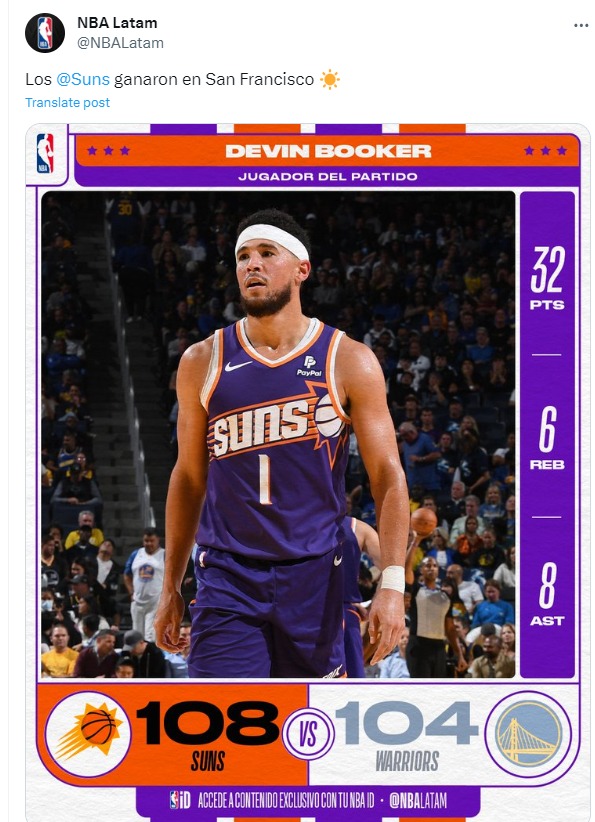 Impulsados por su afición y liderados por el Chef Curry, los Warriors realizaron un tercer cuarto impresionante con 40 puntos, volteando el marcador a su favor (80-86). Sin embargo, el impulso no fue suficiente para cerrar el juego, y la puntería de Booker desde la línea de tres puntos terminó por hundir a los Golden State en su primera derrota.