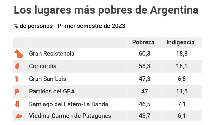 A nivel nacional la de peor provincia es Gran Resistencia (Chaco), donde el 60,3% de la población es pobre.