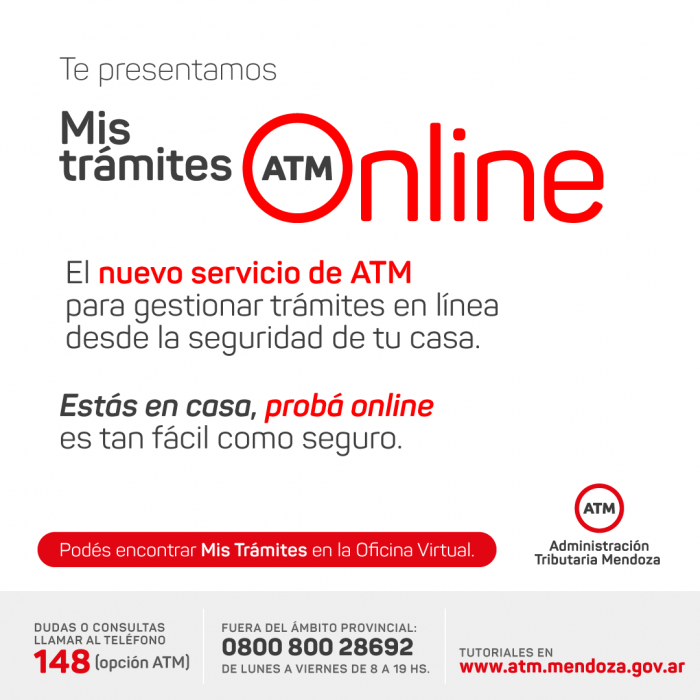 La Administración Tributaria Mendoza (ATM) informó que está disponible el pago en línea de los códigos para Tasas Retributivas de Servicios necesarios para la realización de trámites correspondientes a la Administración Pública Provincial. Es a través del botón “Pagar Online”, en el portal www.atm.mendoza.gov.ar.