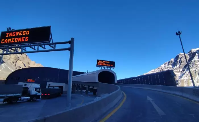 Paso Fronterizo Cristo Redentor. Autoridades informan la apertura del túnel hacia Chile en ambas direcciones para vehículos de carga, ómnibus y particulares.