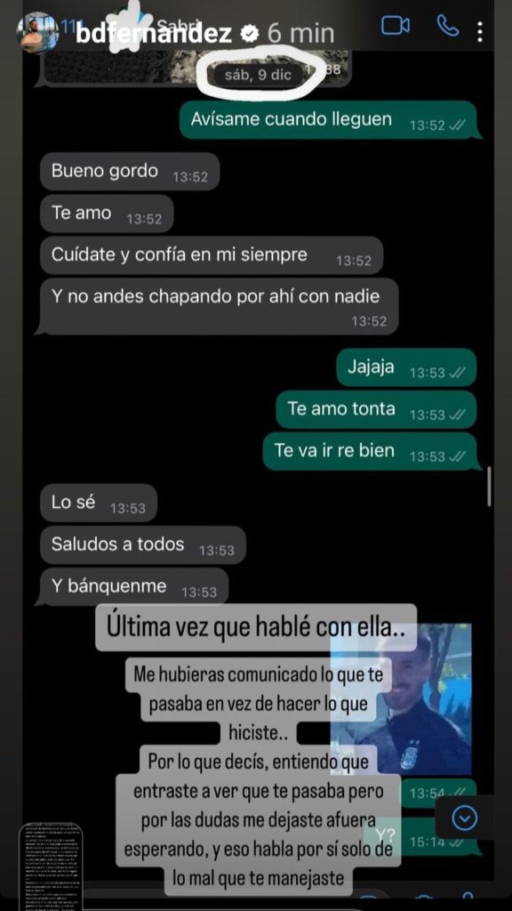 Y no fue sólo eso sino que también publicó un screen de la última charla que mantuvieron por WhatsApp dónde al parecer estaba todo bien.