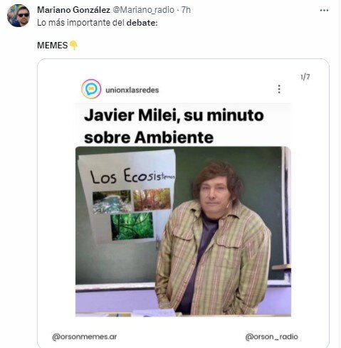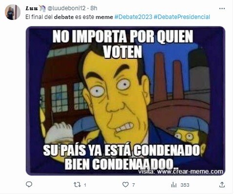 Las redes estallaron de memes y bromas, principalmente sobre los traspiés de Patricia Bullrich, la propuesta de creación del «FBI argentino» de Sergio Massa, las referencias a Córdoba de Juan Schiaretti, y los cruces de Myriam Bregman y Javier Milei.
