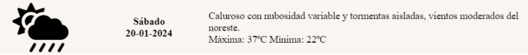 Se espera una jornada calurosa con nubosidad variable y la posibilidad de tormentas aisladas, acompañadas por vientos moderados del noreste.