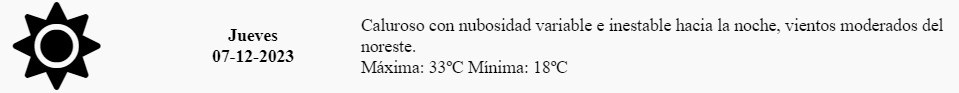 La temperatura máxima alcanzará los 33ºC, mientras que la mínima se ubicará en 18ºC, ofreciendo un día de contrastes térmicos, según lo expresado por Contingencias Climáticas.