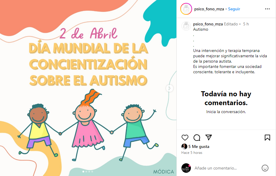 Día de la Concientización sobre el Autismo 2 de abril. Se estima que 1 de cada 100 niños se encuentran en el espectro autista, pero solo 1 de cada 160 recibe un diagnóstico; diversas iniciativas destacan esta conmemoración.