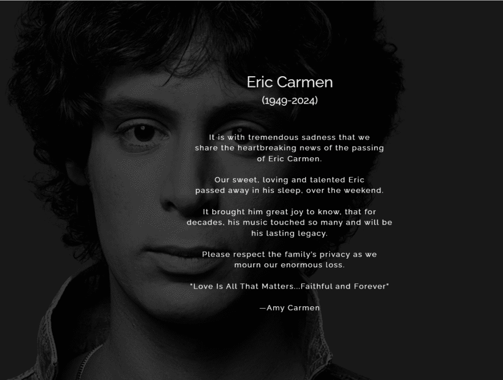 Con profunda tristeza, Amy compartió la noticia de que Eric falleció pacíficamente mientras dormía durante el fin de semana. En el mensaje, resaltó la alegría que le causaba saber que la música de Eric tocó a tantas personas a lo largo de las décadas y que su legado perdurará.